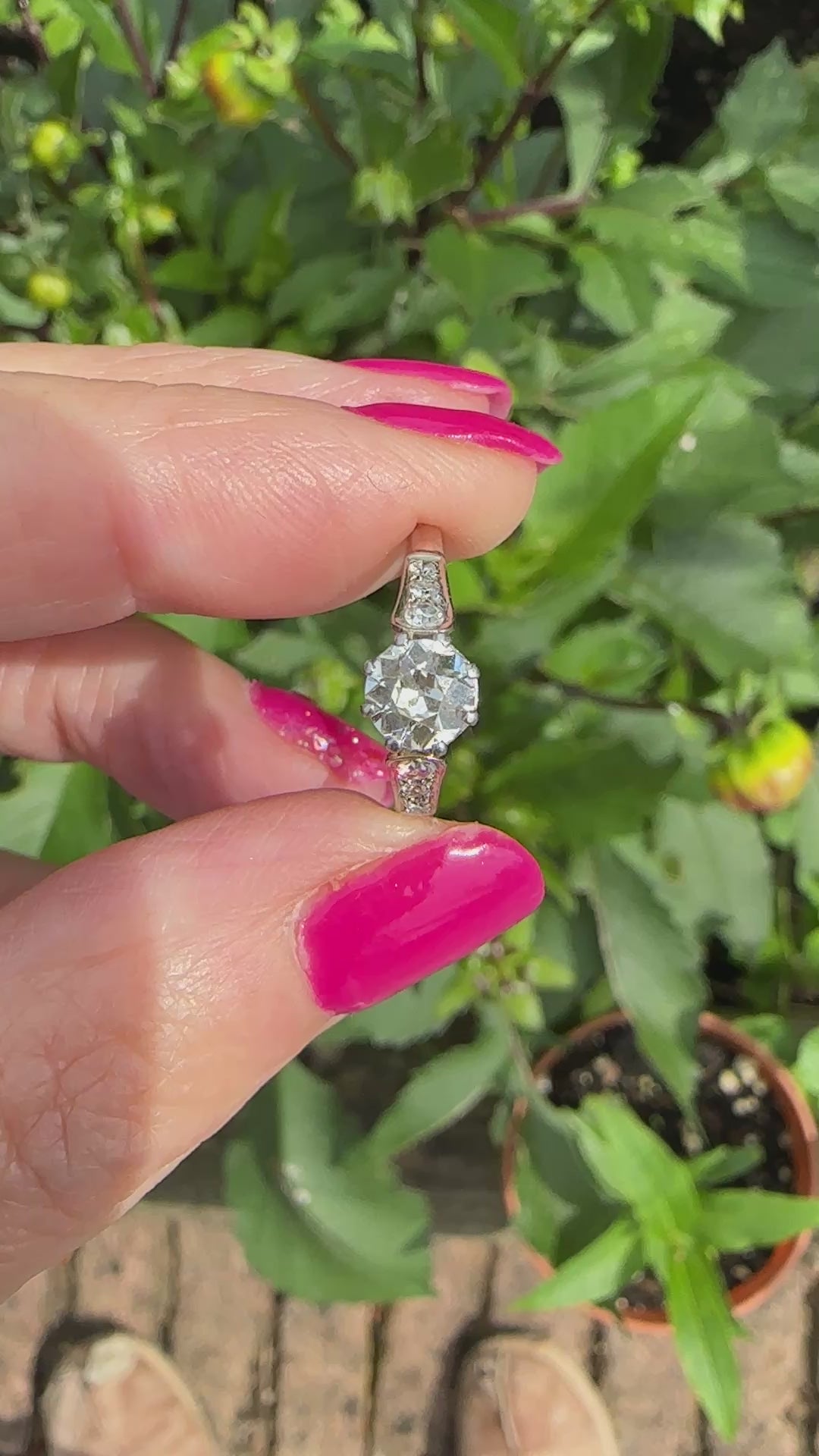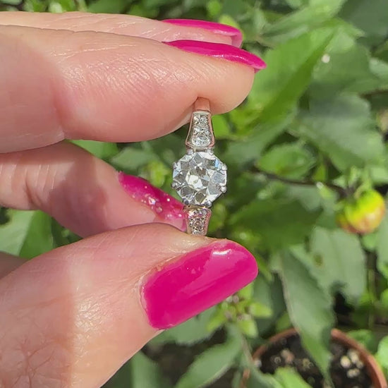 A really pretty antique heirloom ring, the photos do not do it justice! The facets of the old cut diamond bewitched and confused the still camera. It is bright and clear and it absolutely sparkles with the brilliance that only the old cut diamonds have!