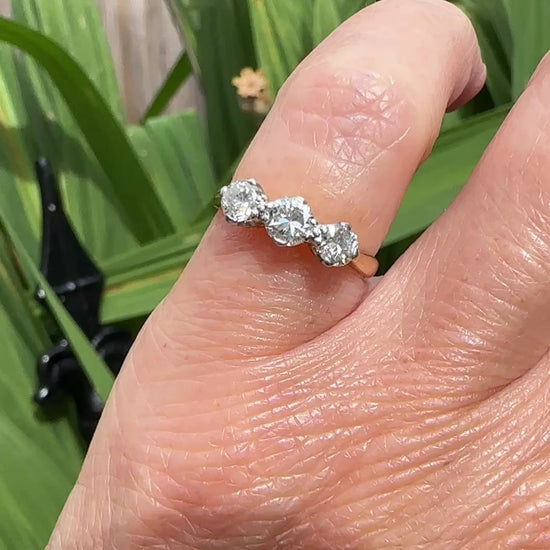 Vintage 18ct natural diamond three stone trilogy ring 0.55ct c1950's
