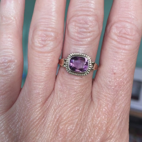 Vintage 9ct gold cushion cut Amethyst solitaire ring